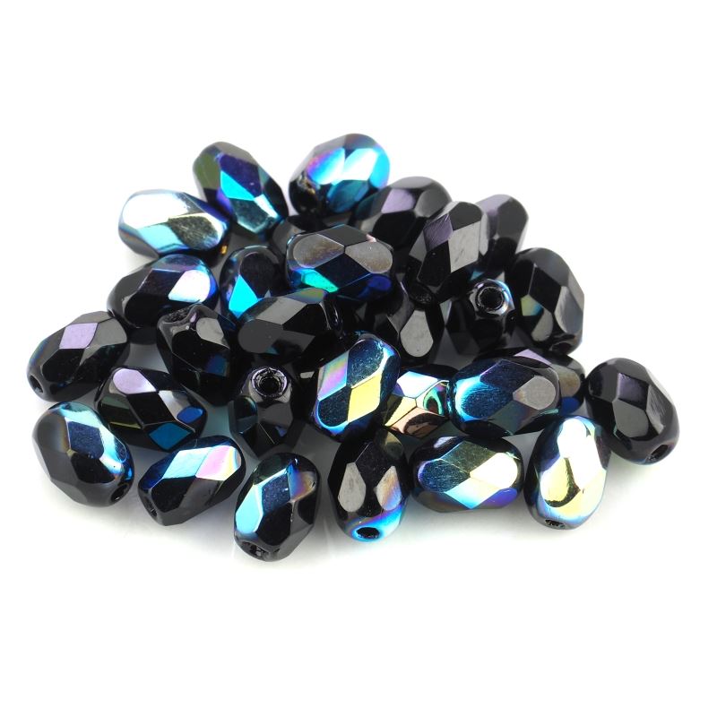 Broušené korálky Olivy 6x4 mm Černá (23980-28701) 30 ks