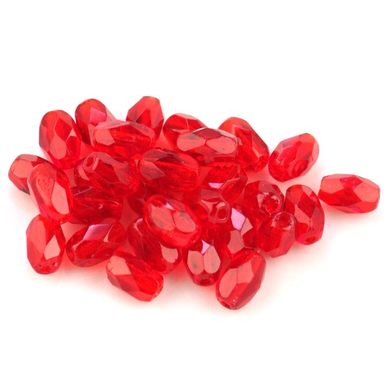 Broušené korálky Olivy 6x4 mm Červená (90070-00000) 30 ks