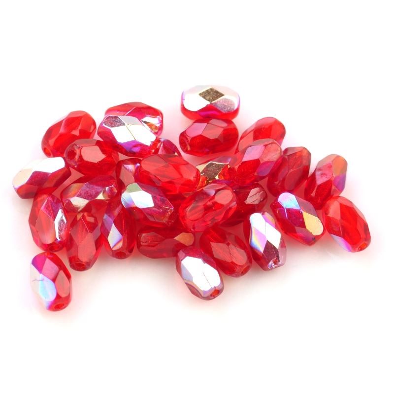 Broušené korálky Olivy 7x5 mm Červená (90070-00000...