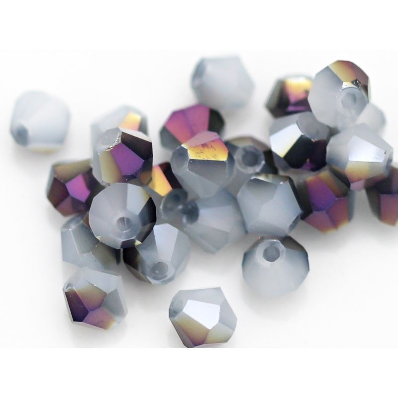 Broušené korálky Sluníčka Bicone 4 mm Čirá + Stříb...