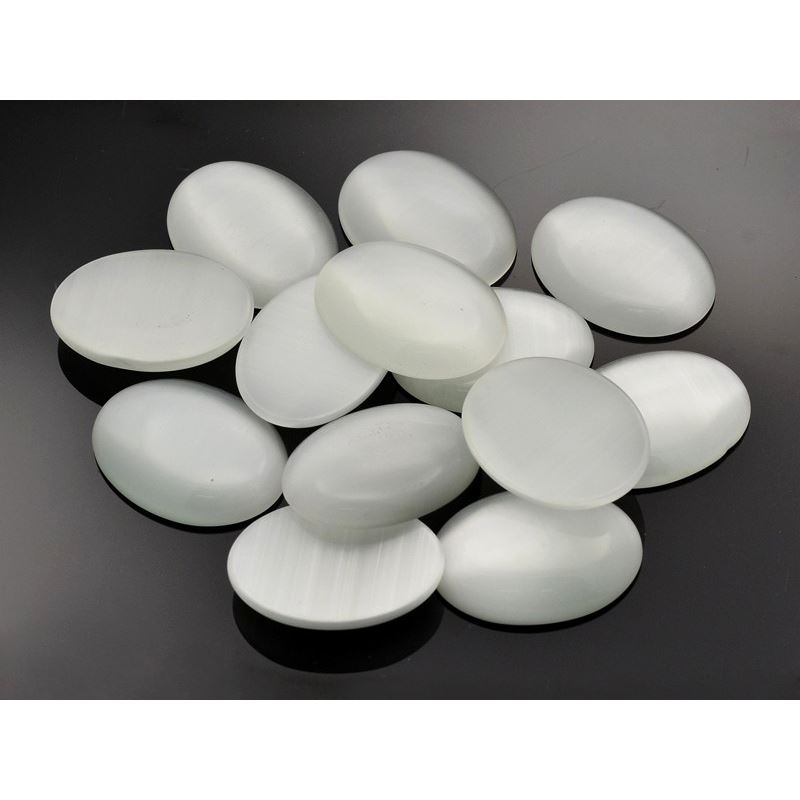 Kabošon ovál Kočičí oči Bílá 27x19x6 mm