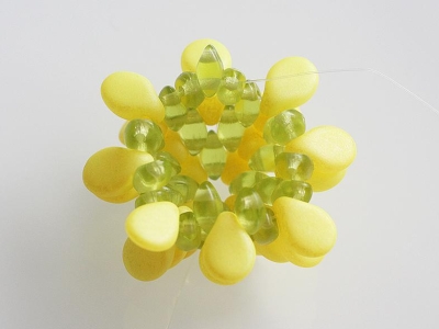 Navlékněte střídavě 4xT a 4xP. Svažte dvojitým uzlem do kroužku. Nechte si cca 8 cm dlouhý konec vlasce na zapošití.