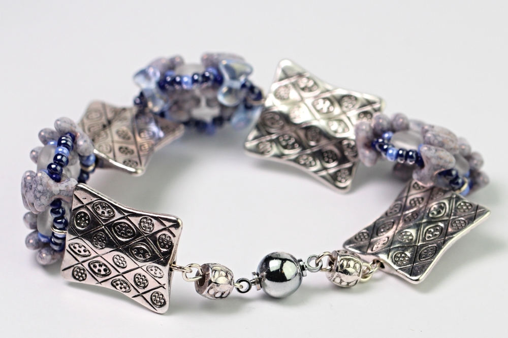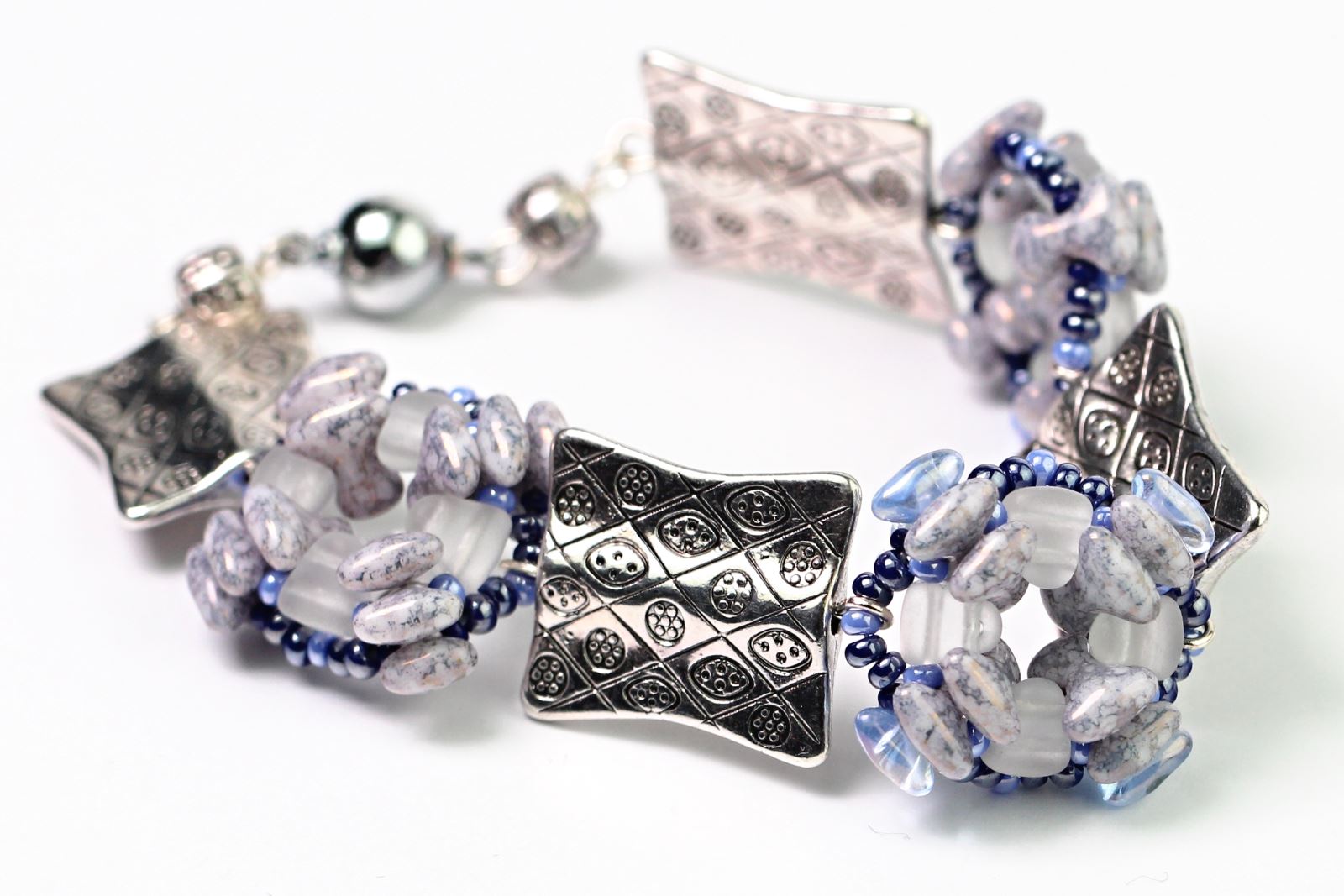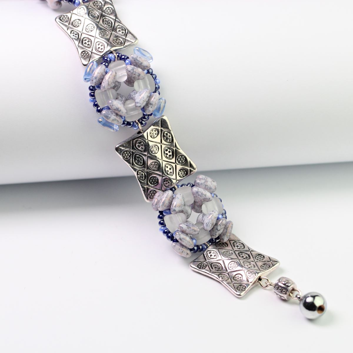 Náramek z korálků TEE Preciosa Ornela kombinovaný a Charlotte 8/0, rokajlem 10/0 a kovovými korálky.