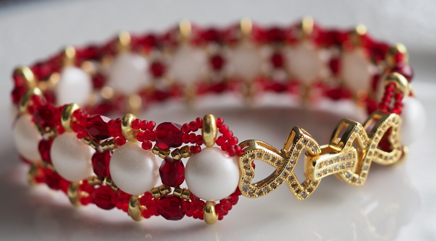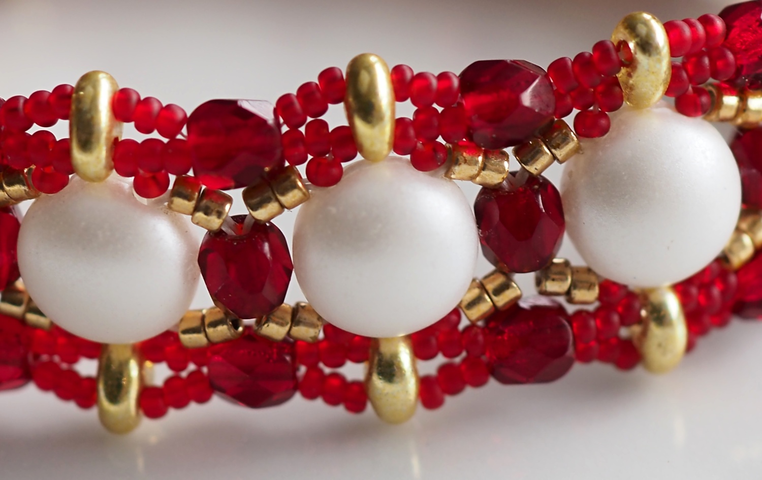 Všechny přidané korálky v tomto kroku prošijte ještě jednou. Tím je náramek hotový.