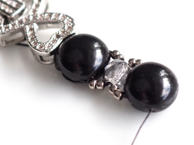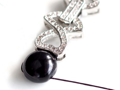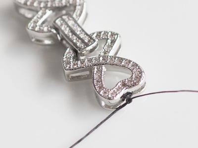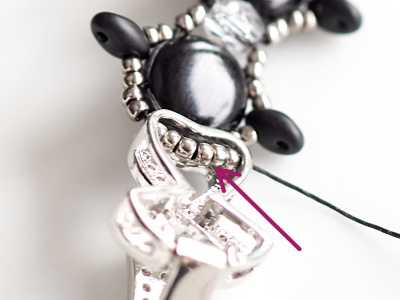 Nit přivažte na prostředek boční strany zapínání a navlékněte Candy a několikrát přišijte k zapínání. Je důležité prošít korálek alespoň 3x.