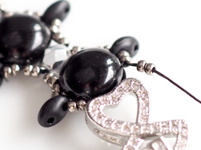 Naberte 2xR15+T+2xR15 a prošijte Candy na druhou stranu. Korálky přidané v kroku 6 a 7 prošijte ještě jednou pro zpevnění.