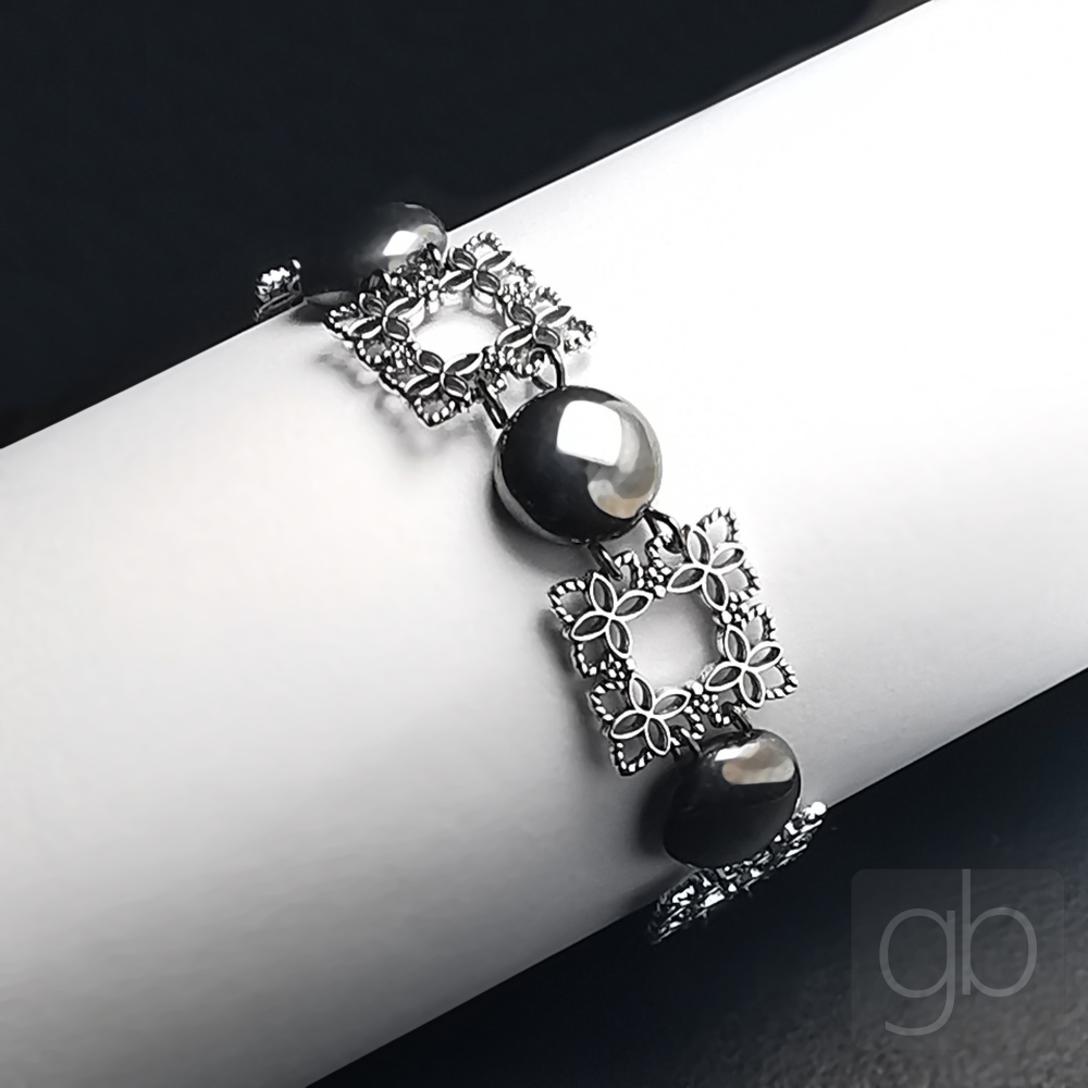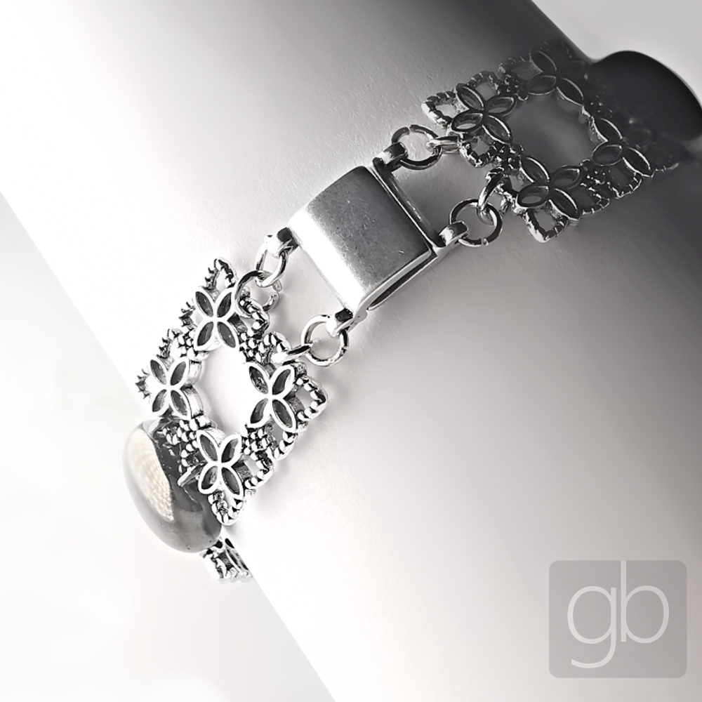 Pomocí ketlovacích kleští propojíte filigrány a Candy. Připevníte bižuterní zapínání a je hotovo.