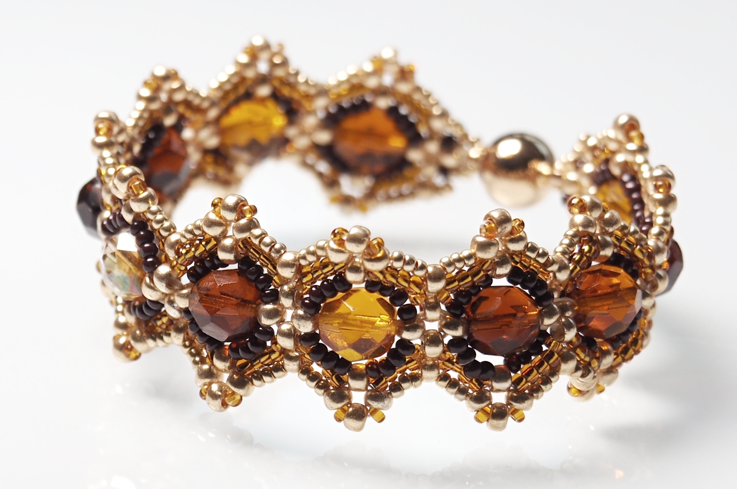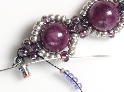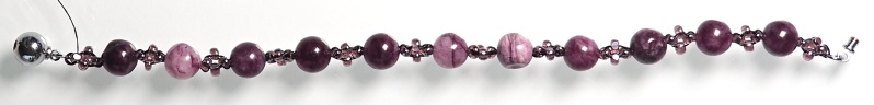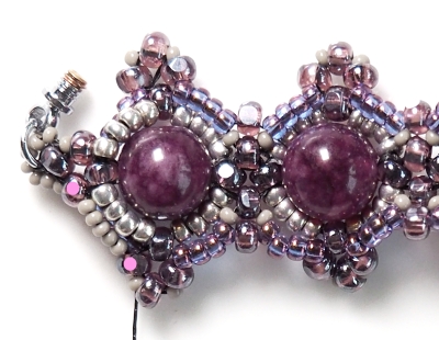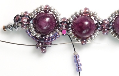 KROK 7 a 8 opakujte po celém obvodu náramku. Přidané korálky budou trochu překrývat předchozí řadu a kroutit se, ale nebojte, při další řadě si vše sedne, jak má.