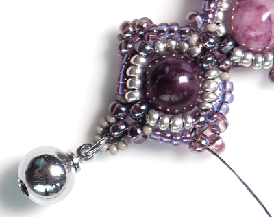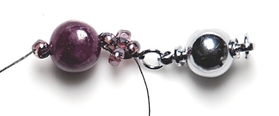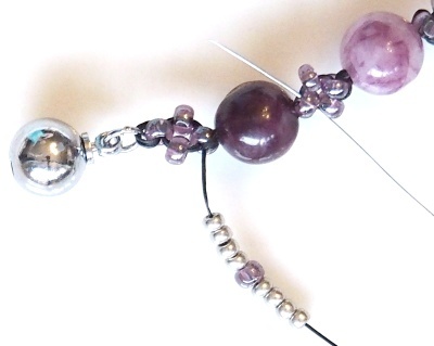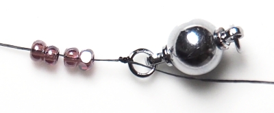 Čtyři CH spojte do kroužku (prošijte znovu od první přidané CH a zatáhněte). Prošijte je ještě jednou pro zpevnění a navlékněte kulatý korálek.