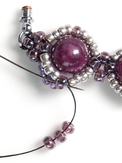 Takto všijte 4xR15 po celém obvodu náramku, zapošijte nit a tím je náramek hotový.