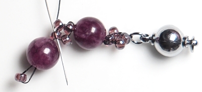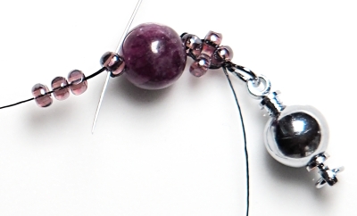 Ustřihněte korálkovací nit o délce cca 1 m, přivažte na ni zapínání a na dlouhý konec navlékněte tenkou korálkovací jehlu (velikost 12/0 nebo 13/0).