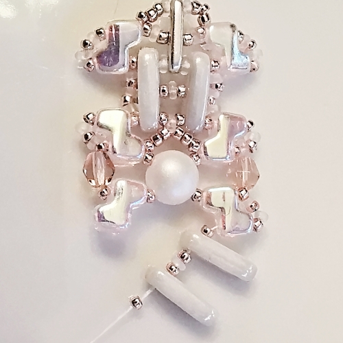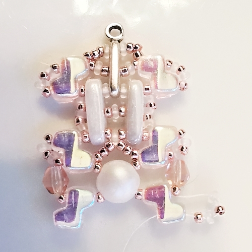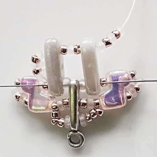 Doplňte všechny korálky kolem dvou B. Z vnější strany: TOR + R15 +TOR + R15 + TOR a dovnitř mezi B do obou volných dírek R15 + TOR + R15.