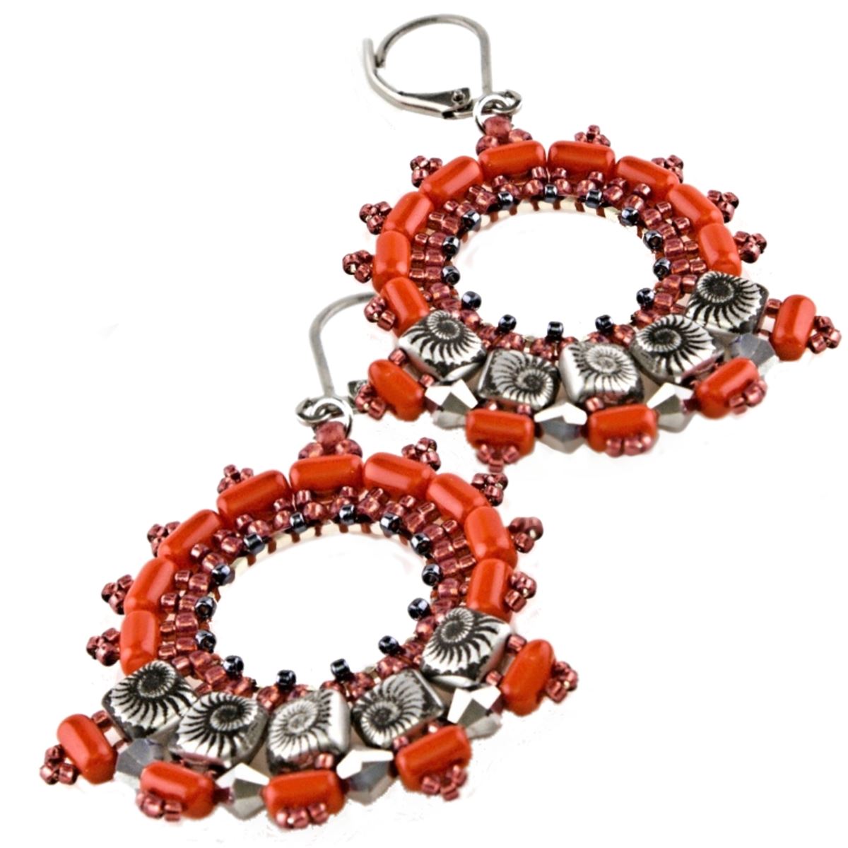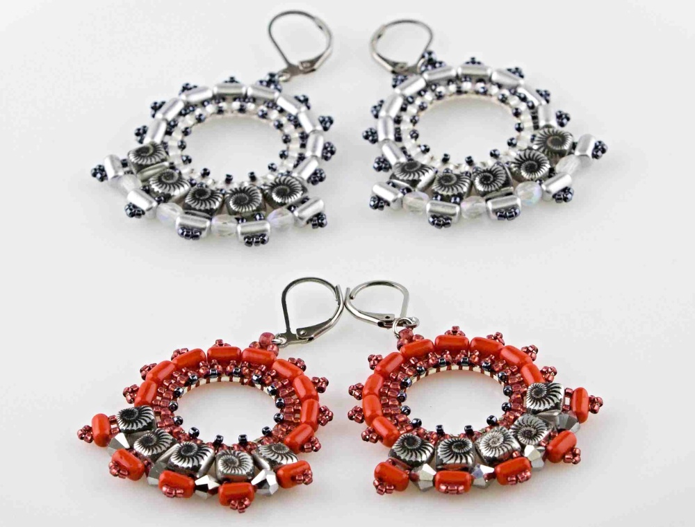 U páté přidávané R dáme místo prostředního R15 navlékněte R8, pro zavěšení spojovacího kroužku a připevnění náušnicového háčku. Přišijte ještě 4 Rulla stejným způsobem.