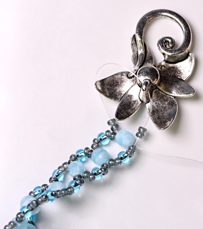 Totéž zopakujte na druhé straně náhrdelníku. Jen s tím rozdílem, že přišijete druhou část zapínání.