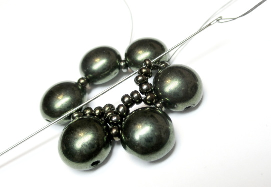 Jehlu provlékněte posledním z právě navlečené trojice korálků.