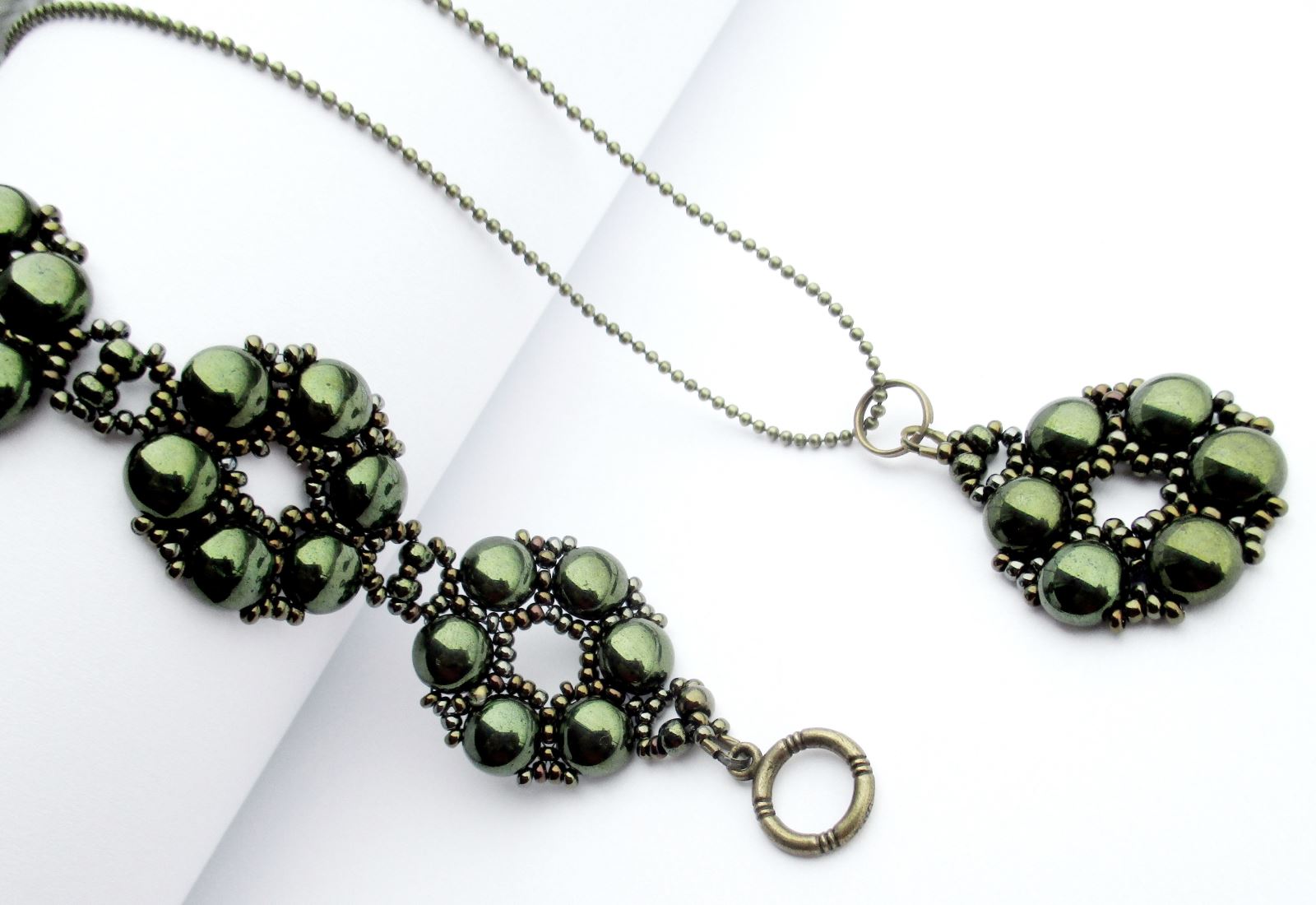 Souprava se skládá z náramku a přívěsku. Pro milovnice větších náušnic, by bylo možné použít motiv i k ušití náušnic, postup by byl stejný jako u přívěsku.