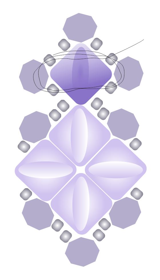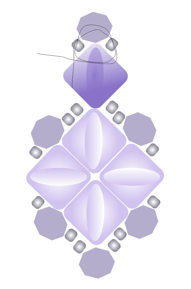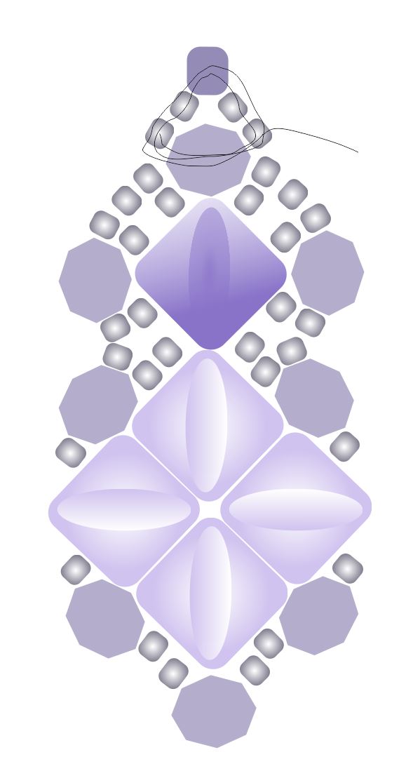 Náušnice je tvořena jednou jednotkou náramku a je doplněna o jednu další SILKY nahoře, kroužkem a náušnicovým háčkem.