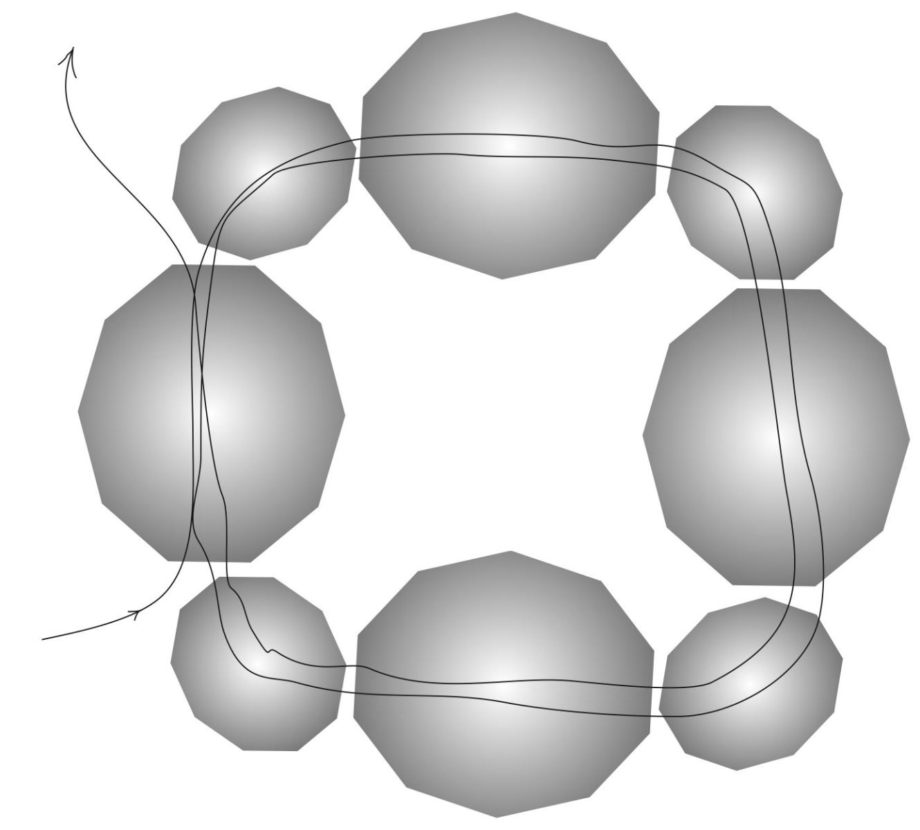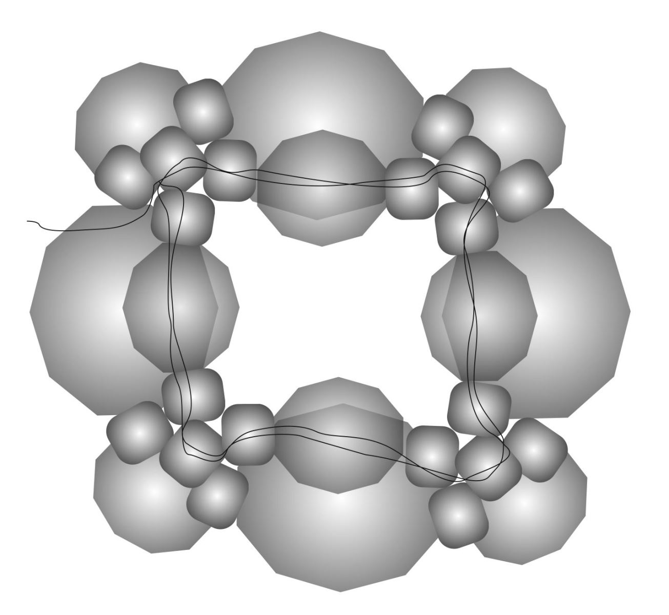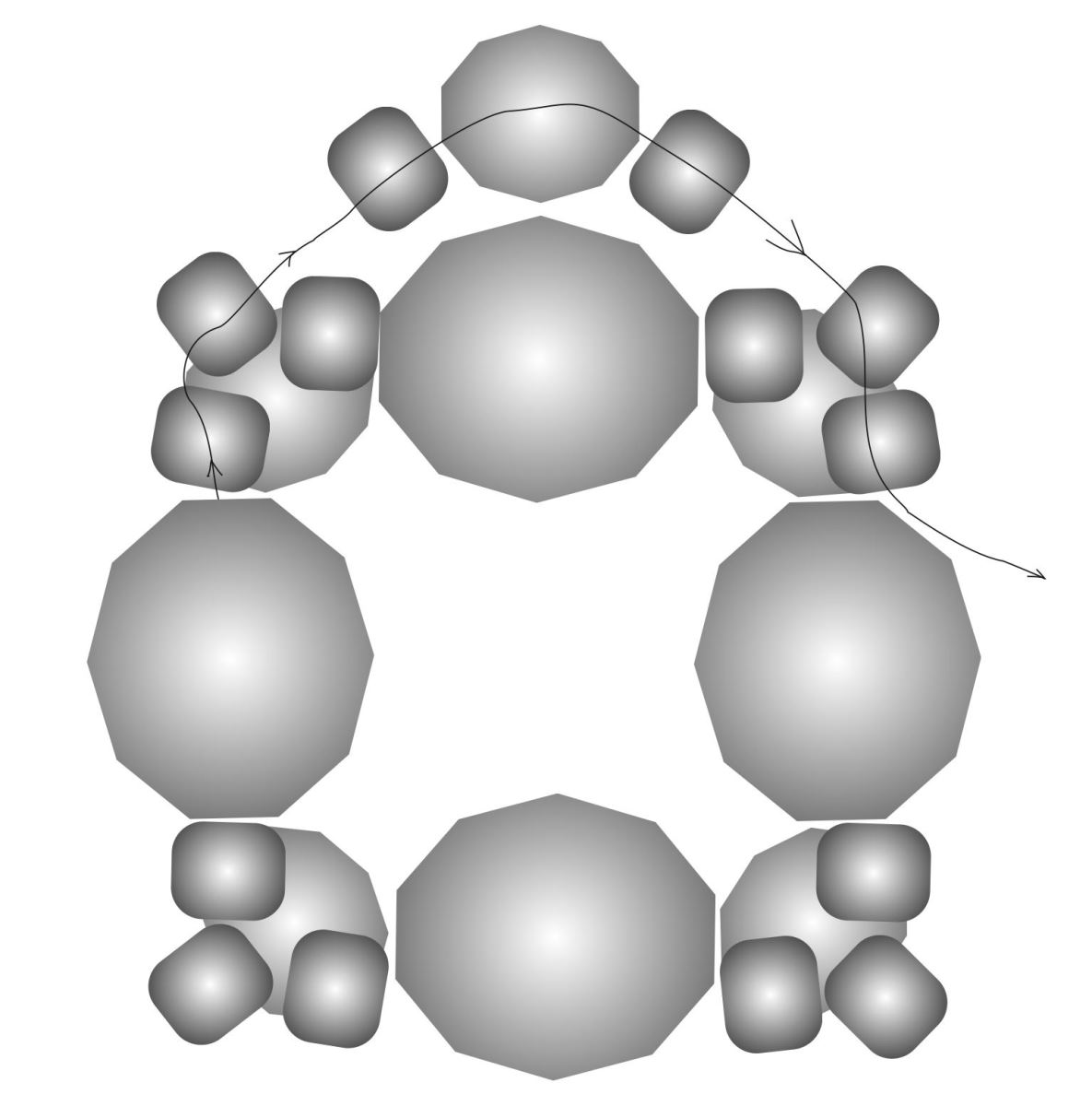 Navlékněte 4x střídavě O4 a O3 a spojte do kroužku a znovu prošijte (Obrázek 1). Pro připojení dalšího kroužku nit postavte do O4 a navlékněte O3+O4+O3+O4+O3+O4+O3 a prošijte z druhé strany O4 ze které jste vycházeli. Kroužek znovu pojistěte dalším prošitím, ať je šperk pevný.