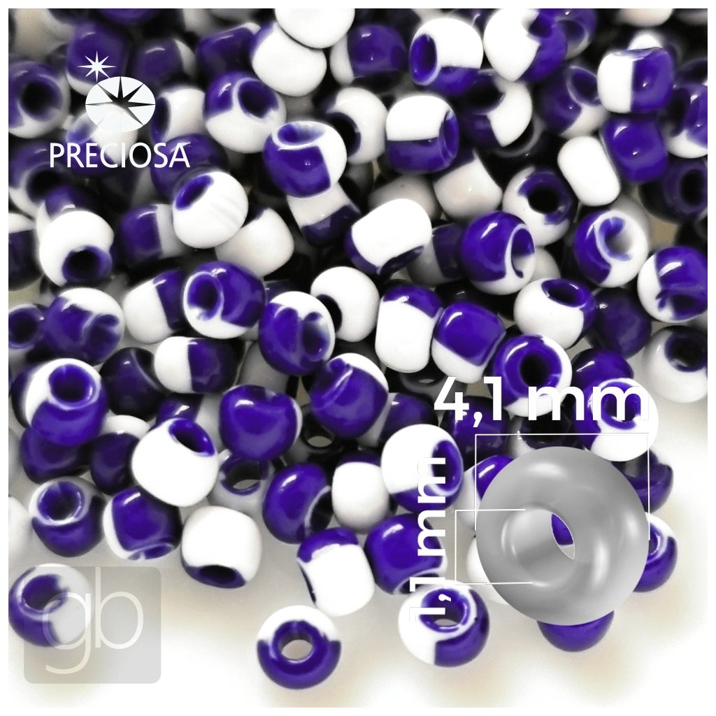 Preciosa HARLEQUIN rokajl 6/0 4,1 mm Modrá Bílá 03730 20 g