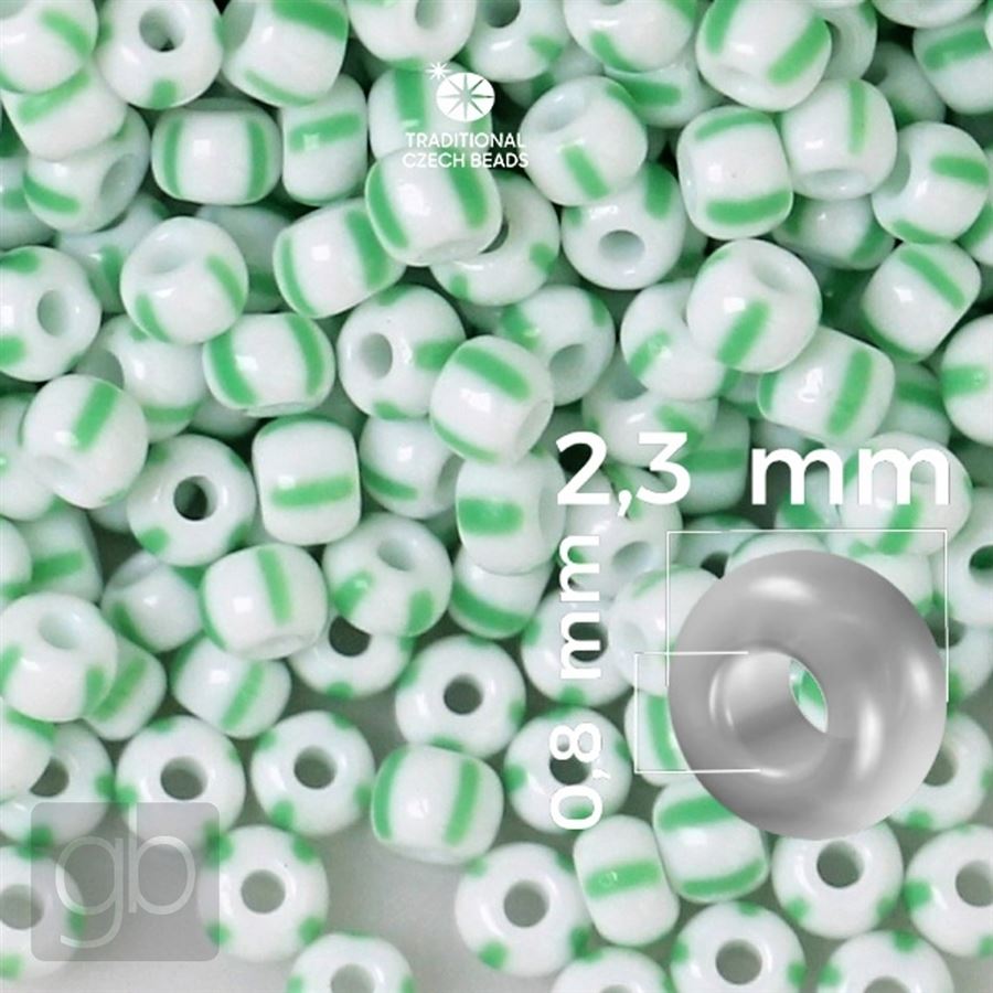 Preciosa STRIPED rokajl 10/0 2,3 mm Zelená Bílá 03850 20 g