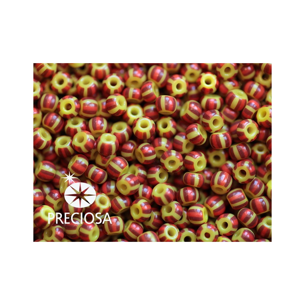 Preciosa STRIPED rokajl 7/0 3,5 mm Žlutá-červená 83190 20 g