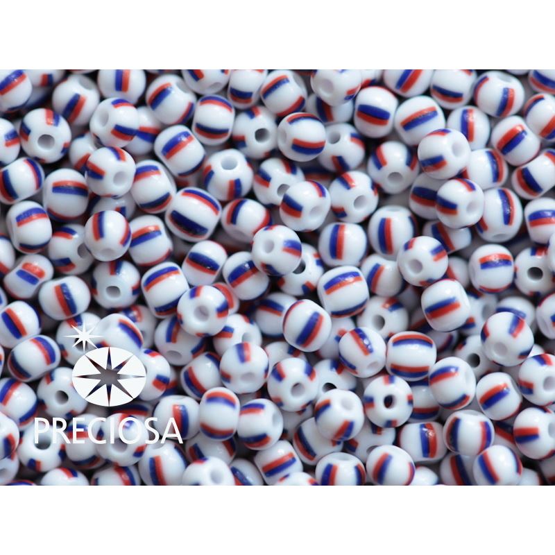 Preciosa STRIPED rokajl 8/0 2,9 mm Bílá Červená Modrá 03370 50 g