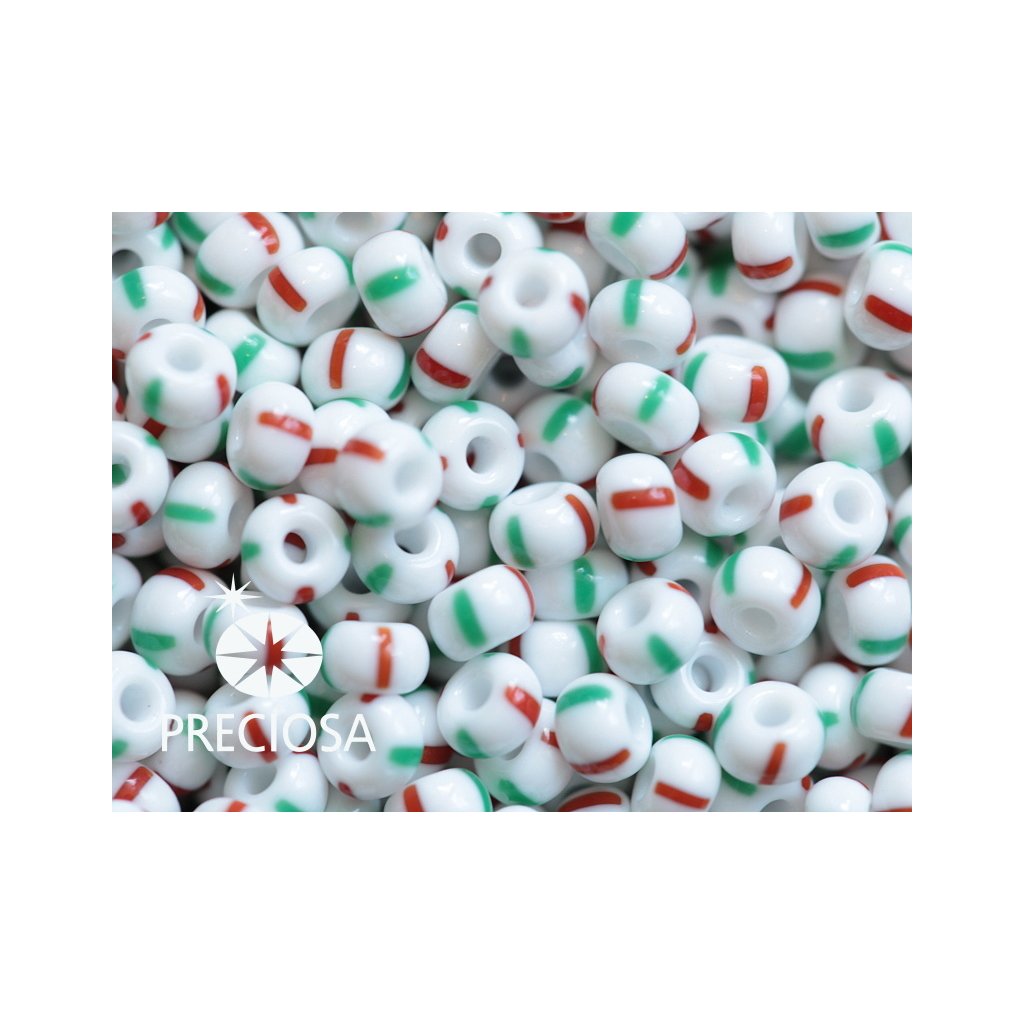 Preciosa STRIPED rokajl 8/0 2,9 mm Bílá Červená Zelená 03950 50 g
