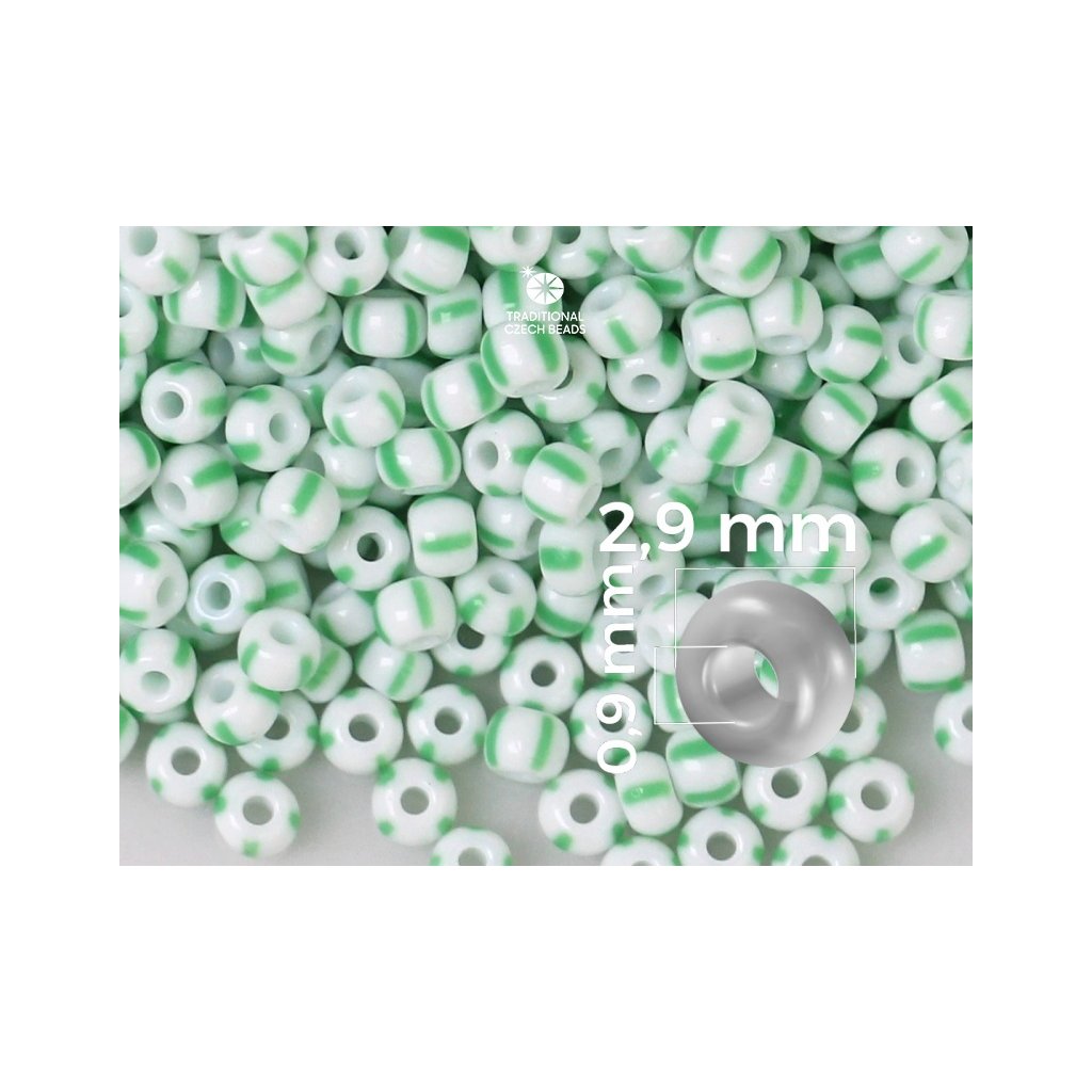 Preciosa STRIPED rokajl 8/0 2,9 mm Bílá Zelená 03850 50 g