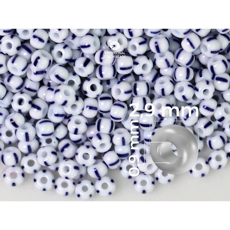 Preciosa STRIPED rokajl 8/0 2,9 mm Modrá Bílá 03330 50 g