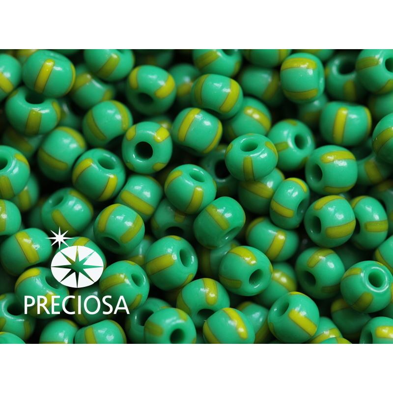 Preciosa STRIPED rokajl 8/0 2,9 mm Zelená Žlutá 53800 50 g