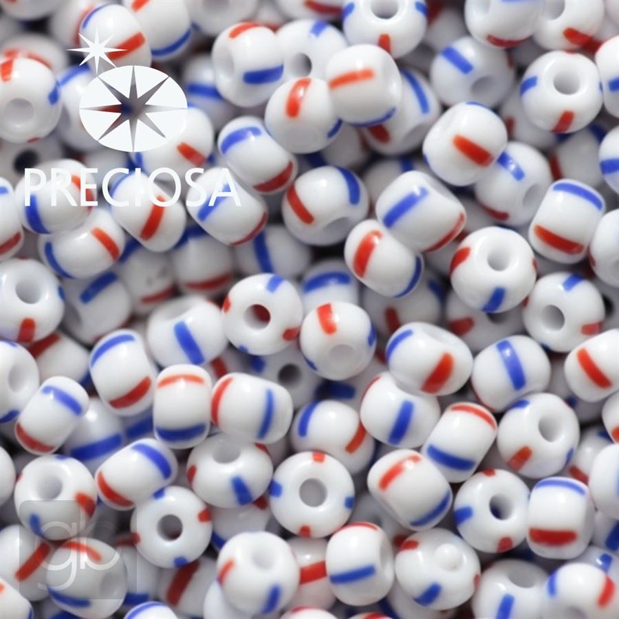 Preciosa STRIPED rokajl 9/0 2,6 mm Červená Modrá 0...