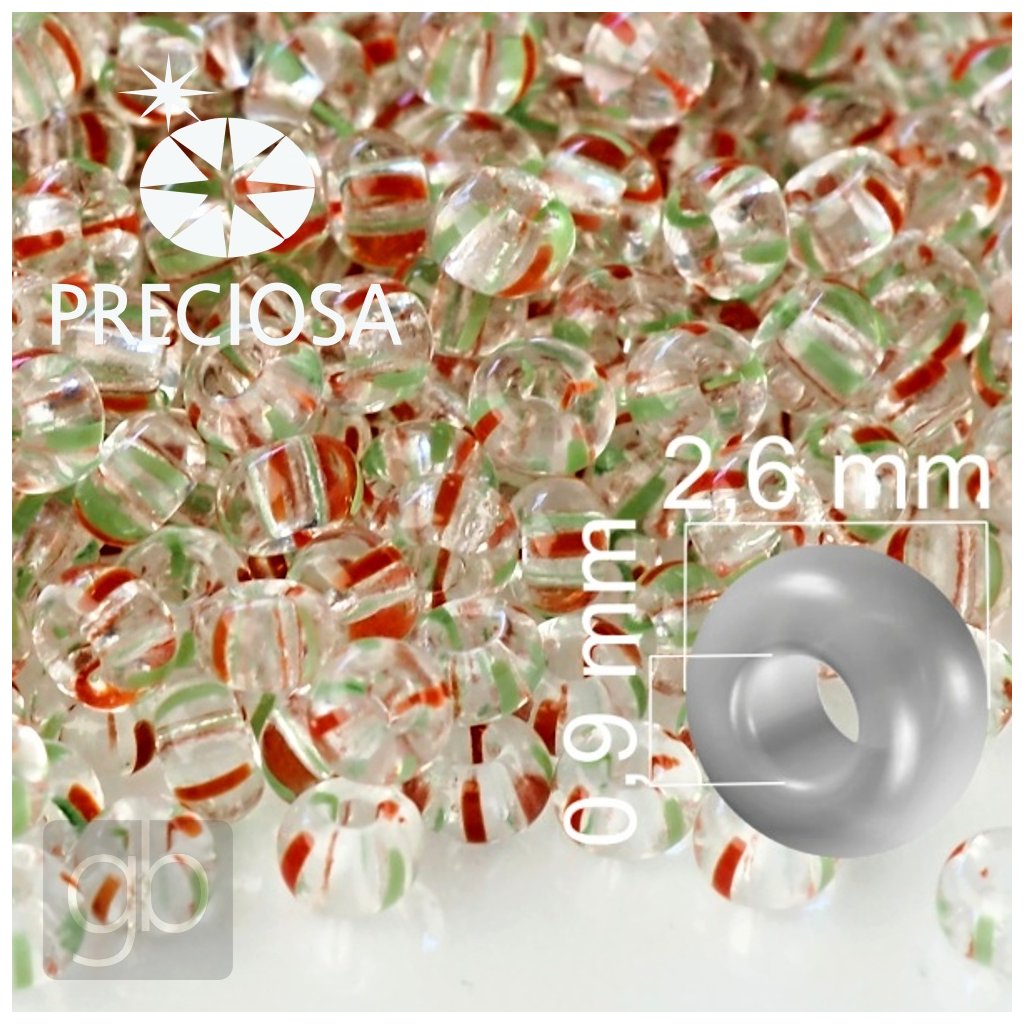 Preciosa STRIPED rokajl 9/0 2,6 mm Červená Zelená 00950 20 g