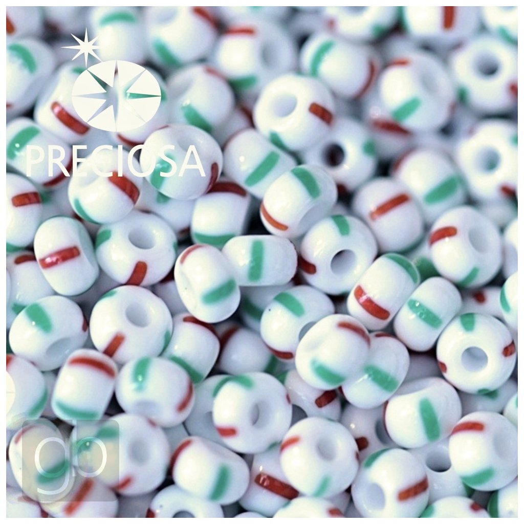 Preciosa STRIPED rokajl 9/0 2,6 mm Červená Zelená 03950 20 g