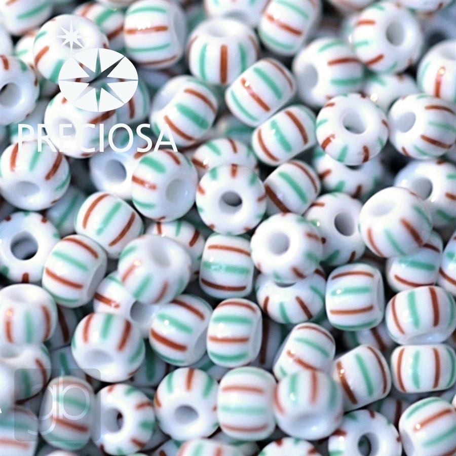 Preciosa STRIPED rokajl 9/0 2,6 mm Červená Zelená Bílá 03951 20 g